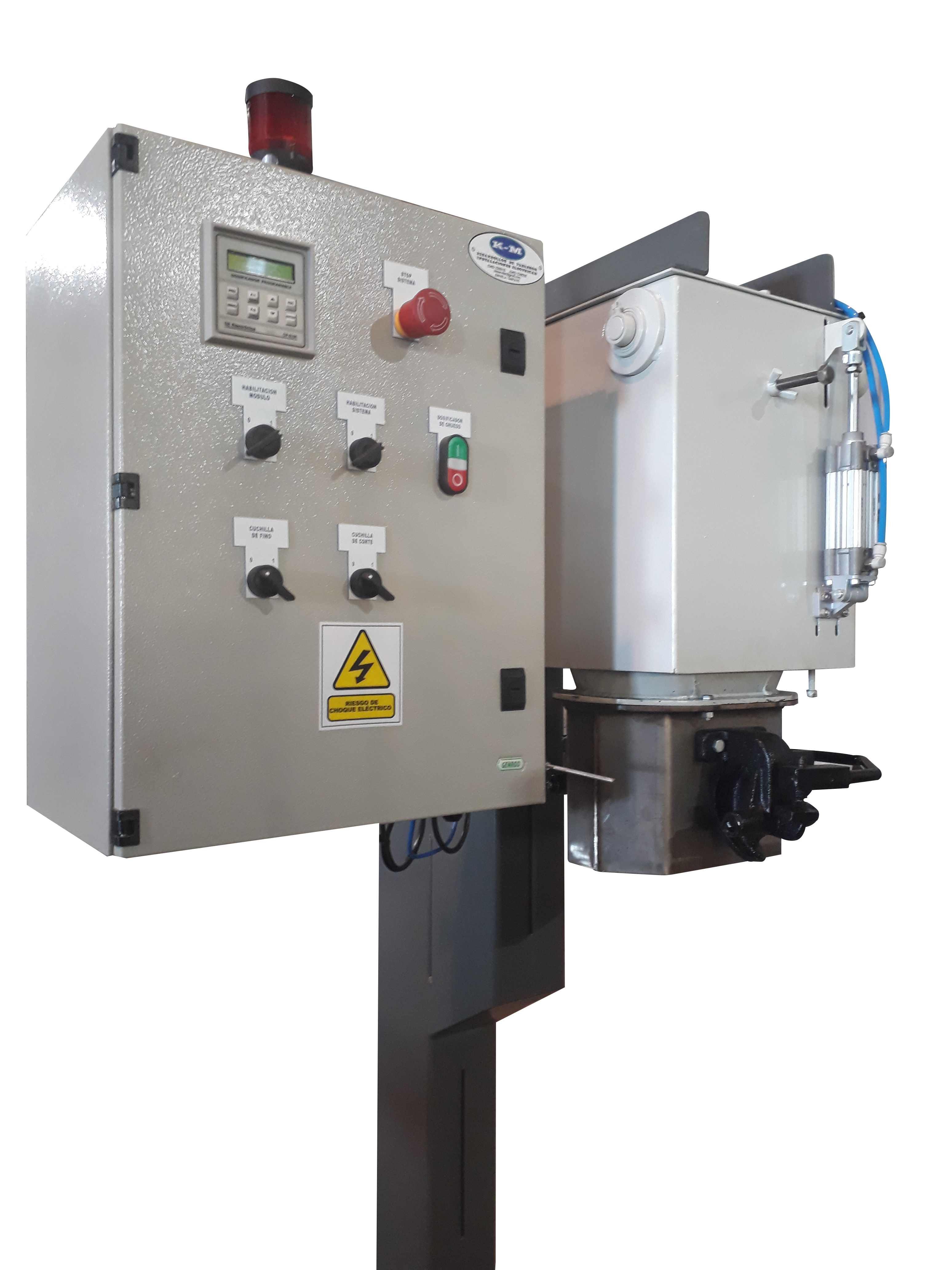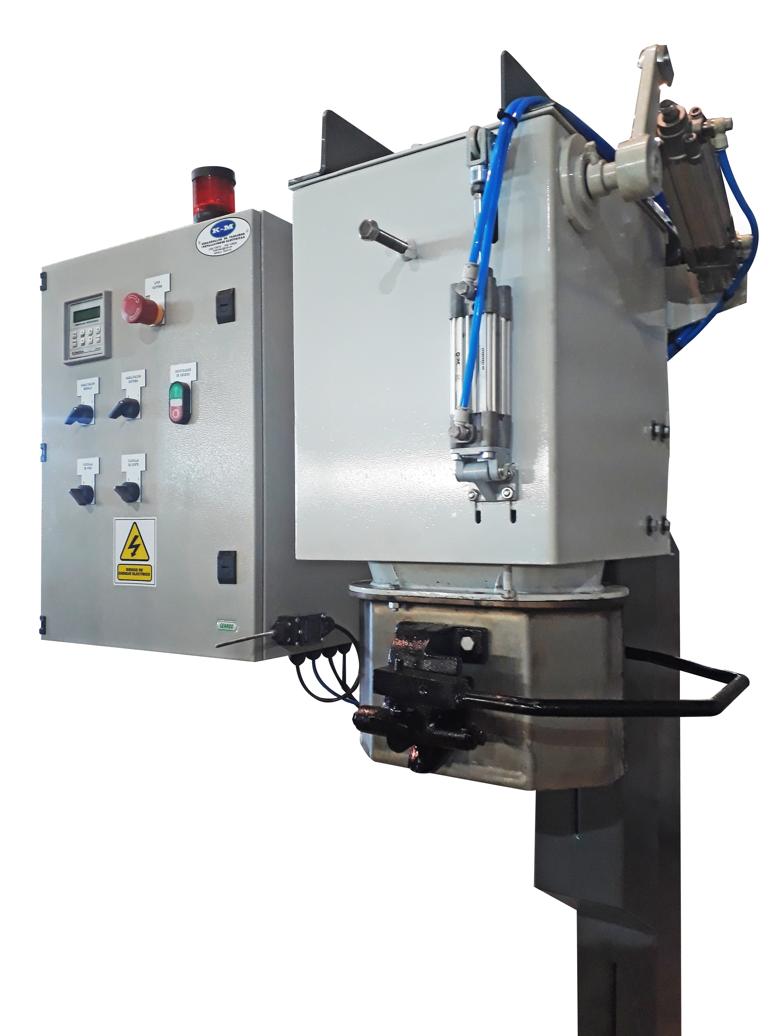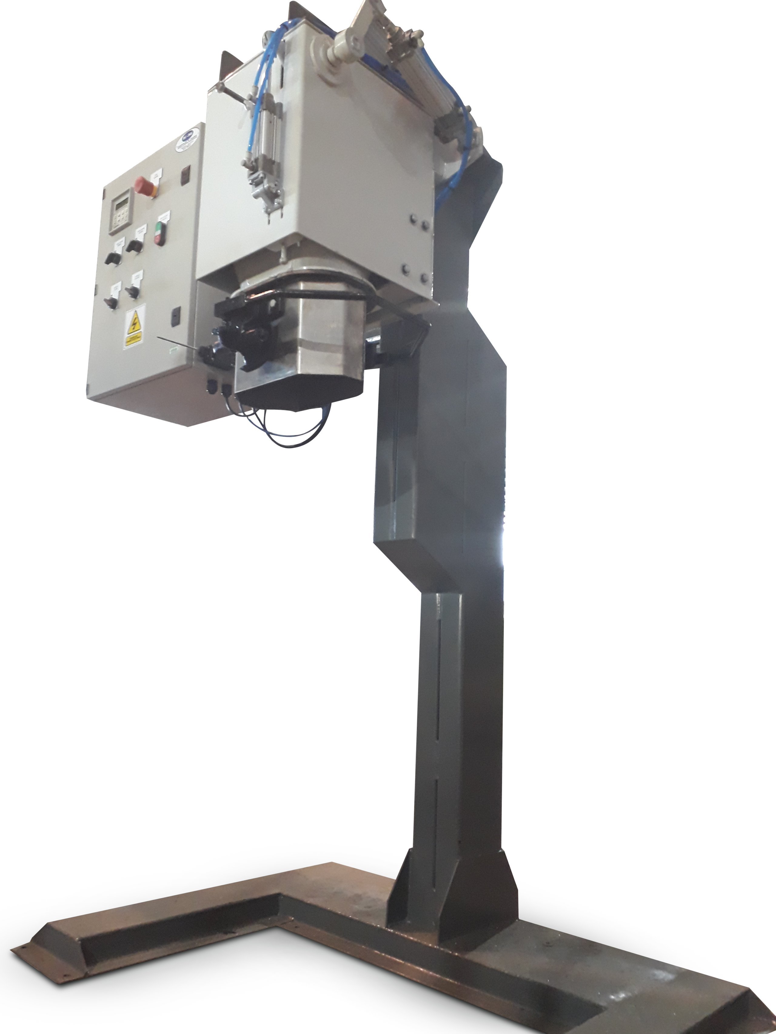 Balanza embolsadora electrónica nueva, construida en acero inoxidable, con boca de embolse para sacos a definir, mono celda interior para precisión de la misma, sistema sujeción con patines engomados, columna súper reforzada de sostén que evita vibraciones en el pesado, tablero de comando, pistón neumático, electroválvulas, accesorios menores, pintura sintética exterior.