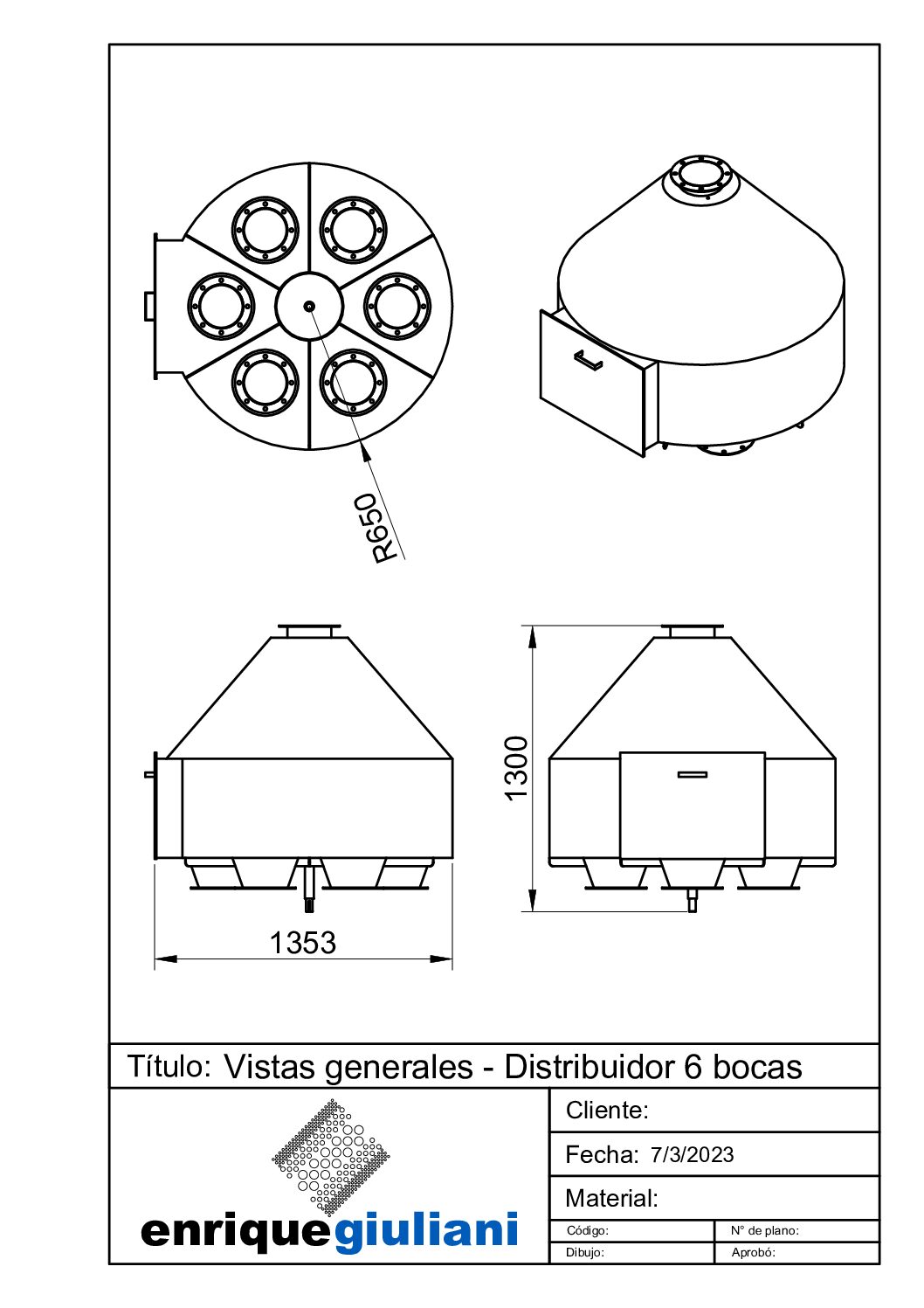El distribuidor de granos, es una máquina que opera como complemento del equipo elevador a cangilones, este permite la distribución de granos, harinas, y alimento procesado entre otros, Los cuales son almacenados en silos, tolvas, o introducidos al proceso de fabricación de alimento.