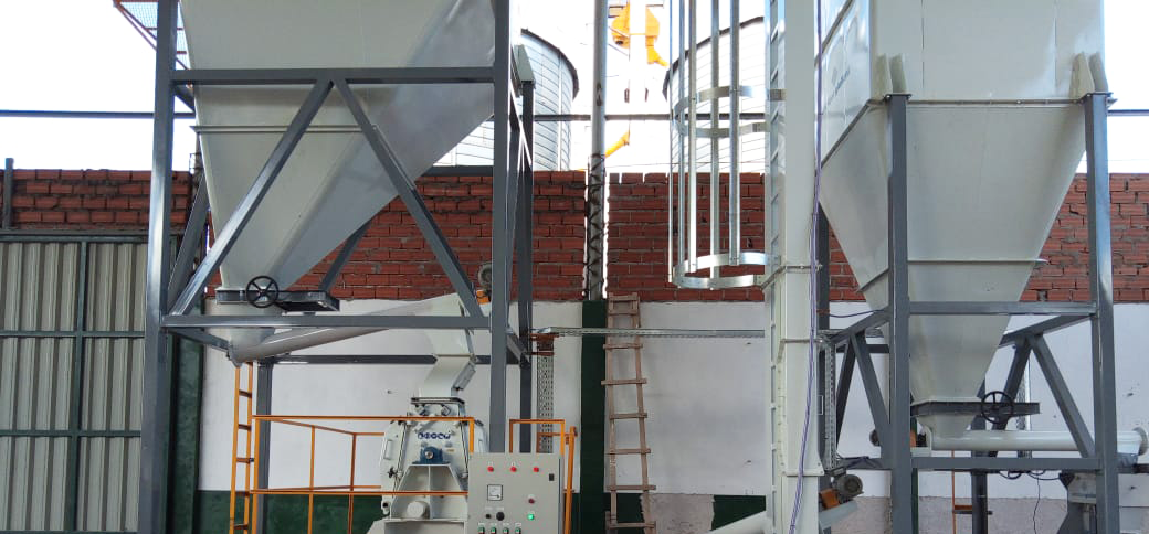 En este caso se hizo entrega de un sector de planta de pellet consistente en el conjunto de equipos para la molienda y embolsado.
