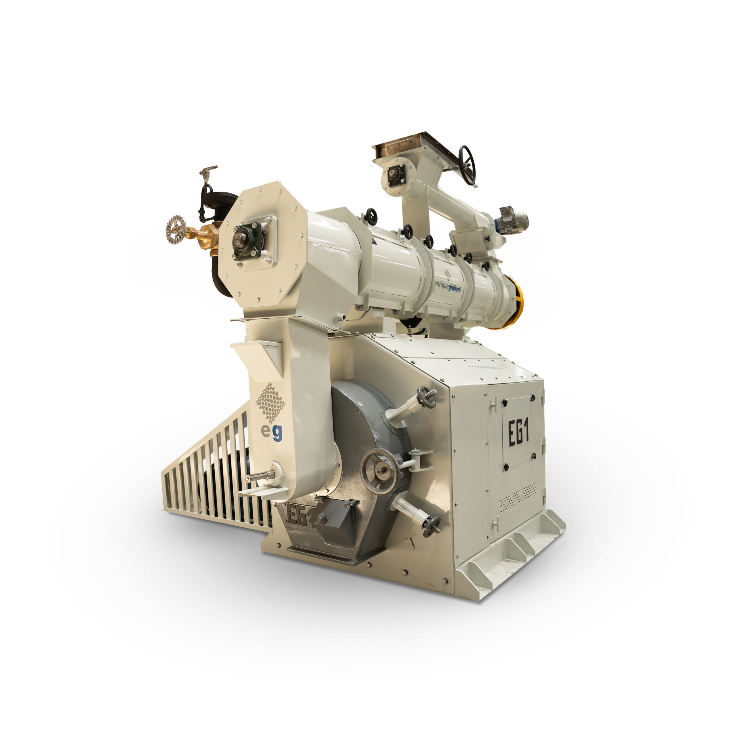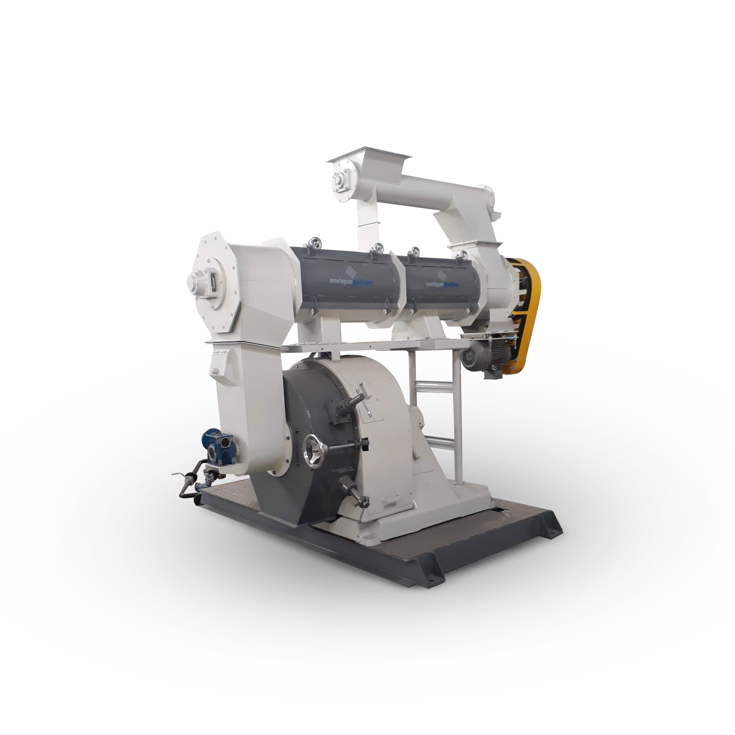 A diferencia de otros modelos, Las prensa EG, poseen un sistema forzador a revoluciones adecuadas, que facilita a un más la entrada de harinas mezcladas al conjunto pelleteador. Como así también una clapeta de rebalse/desvío que actúa de manera automática para esquivar el proceso de pelleteado.