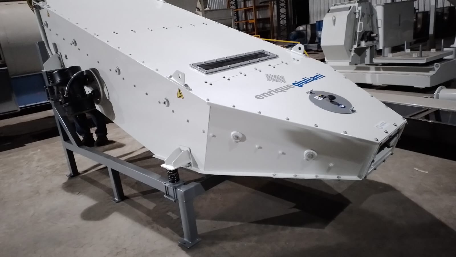ZARANDA DE IMPACTO, CON TAMIZ DE MALLA DE ACERO INOXIDABLE, DOBLE MOTO VIBRADOR, PARA SEPARACIÓN DE FINOS, A COLOCAR BAJO DE EQUIPO ENFRIADOR PARA PLANTA EN NAVARRO, BS AS. Cliente: Unión Productiva